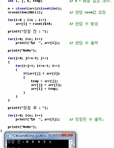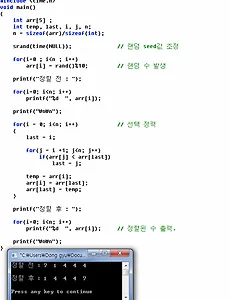 [C언어] 삽입정렬 간단예제. 삽입 정렬. selection 이라고도 하지만 일반적으로 그냥 삽입 정렬 이라고 한다. (5,6,4,3,1,6,2) 이렇게 존재 한다고 가정했을 때. 가장 작은 숫자를 찾는다. (1) 이를 첫번째 자리의 숫자과 교체한다. 일반적으로 교체하는 알고리즘(?)이 굉장히 많이 쓰이는데 잠깐 알아보도록 하자. 1. 임의의 변수를 하나 만들고 그 안에 교체될 대상의 값을 저장한다. [temp = 5] 2. 교체될 대상에 선택한 값을 덮어 씌운다. [5에 1을 덮어 쓴다.] 3. 그러면 5라는 값은 사라지고 1 이 2개가 되었을 것이다. (1,6,4,3,1,6,2) 4. 여기서 선택했던 1에 temp의 값을 덮어 씌운다.(대입) [1 = temp] 5. temp는 5가 들어 있었으므로 ..